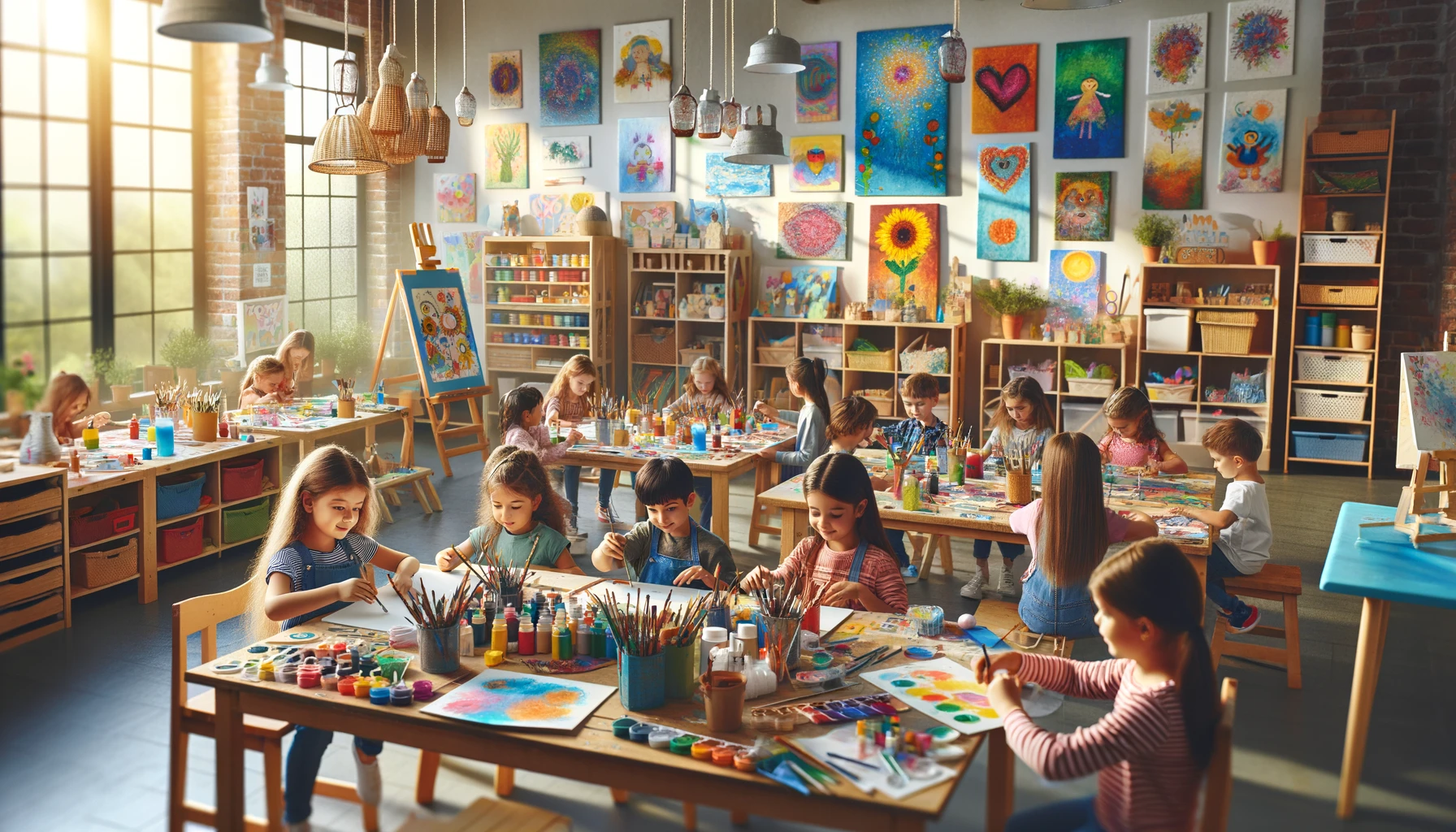 Les enfants peuvent expérimenter avec divers matériaux artistiques tels que la peinture, le collage, le modelage, et la création d’objets d’art simples, ce qui favorise leur expression artistique et leur développement moteur.